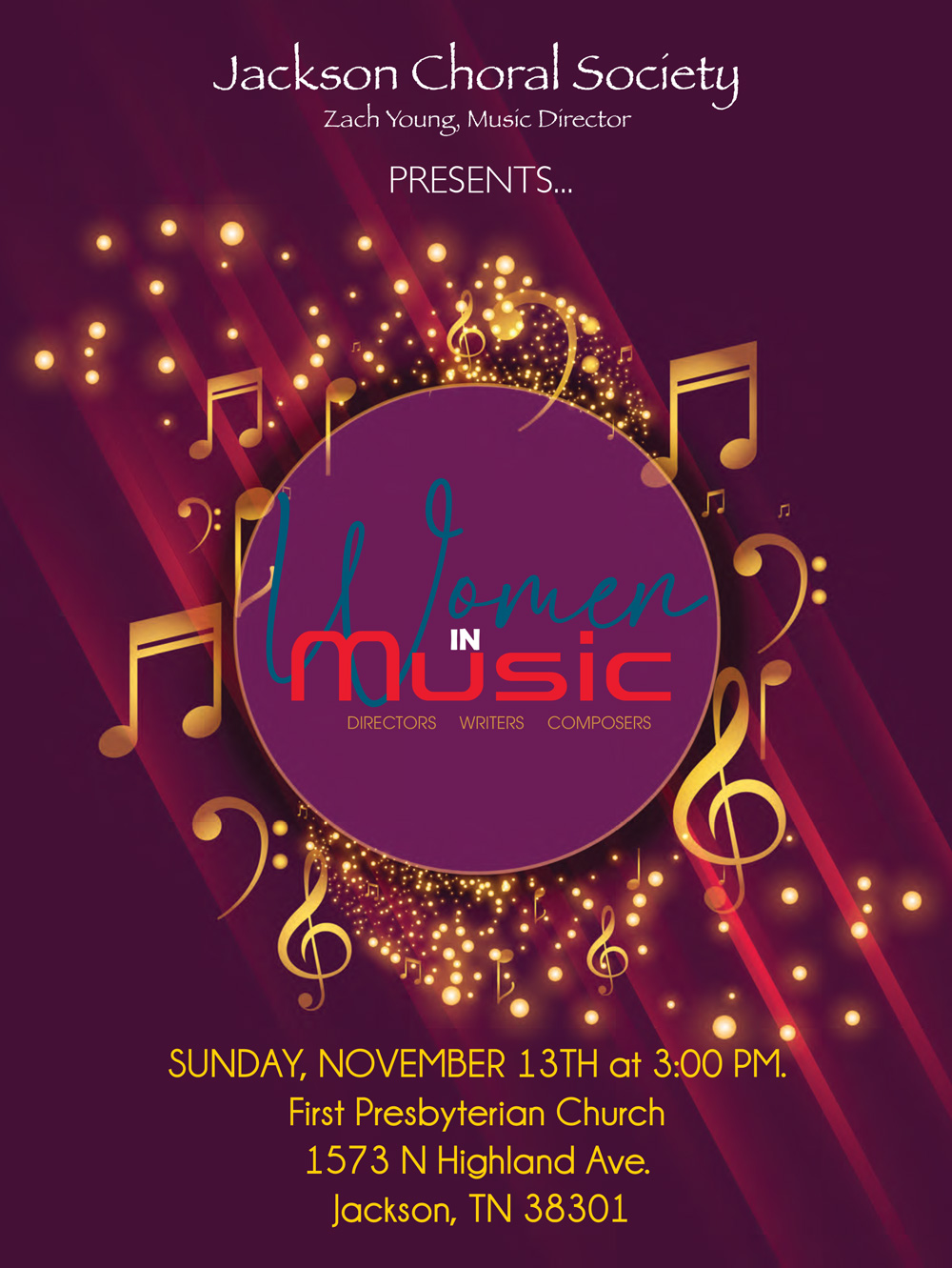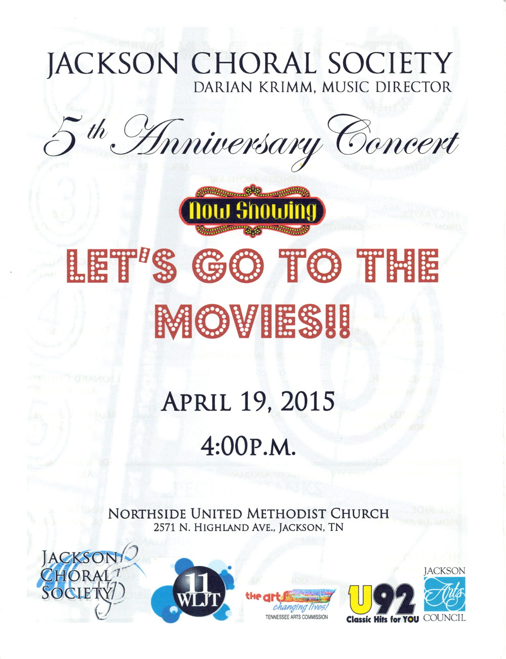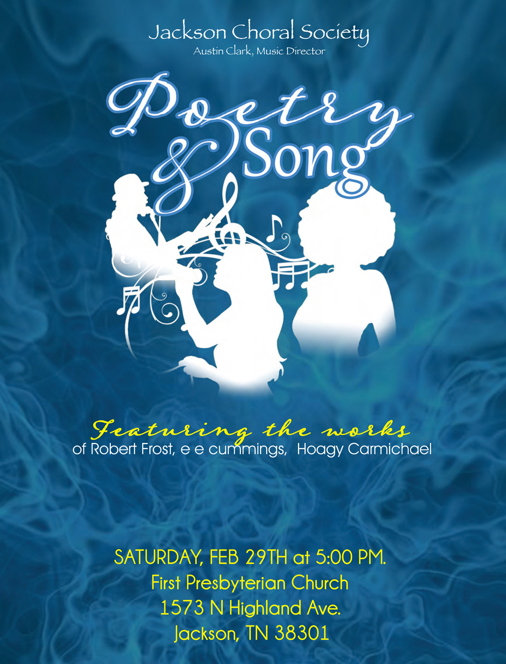 The Jackson Choral Society started in the spring of 2011. Previous community choirs in Jackson included the Lambuth Community Chorus in the 1980s and the Festival Singers of the First Presbyterian Church in the mid 2000s.
