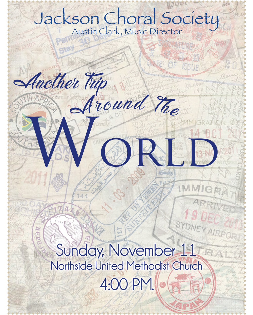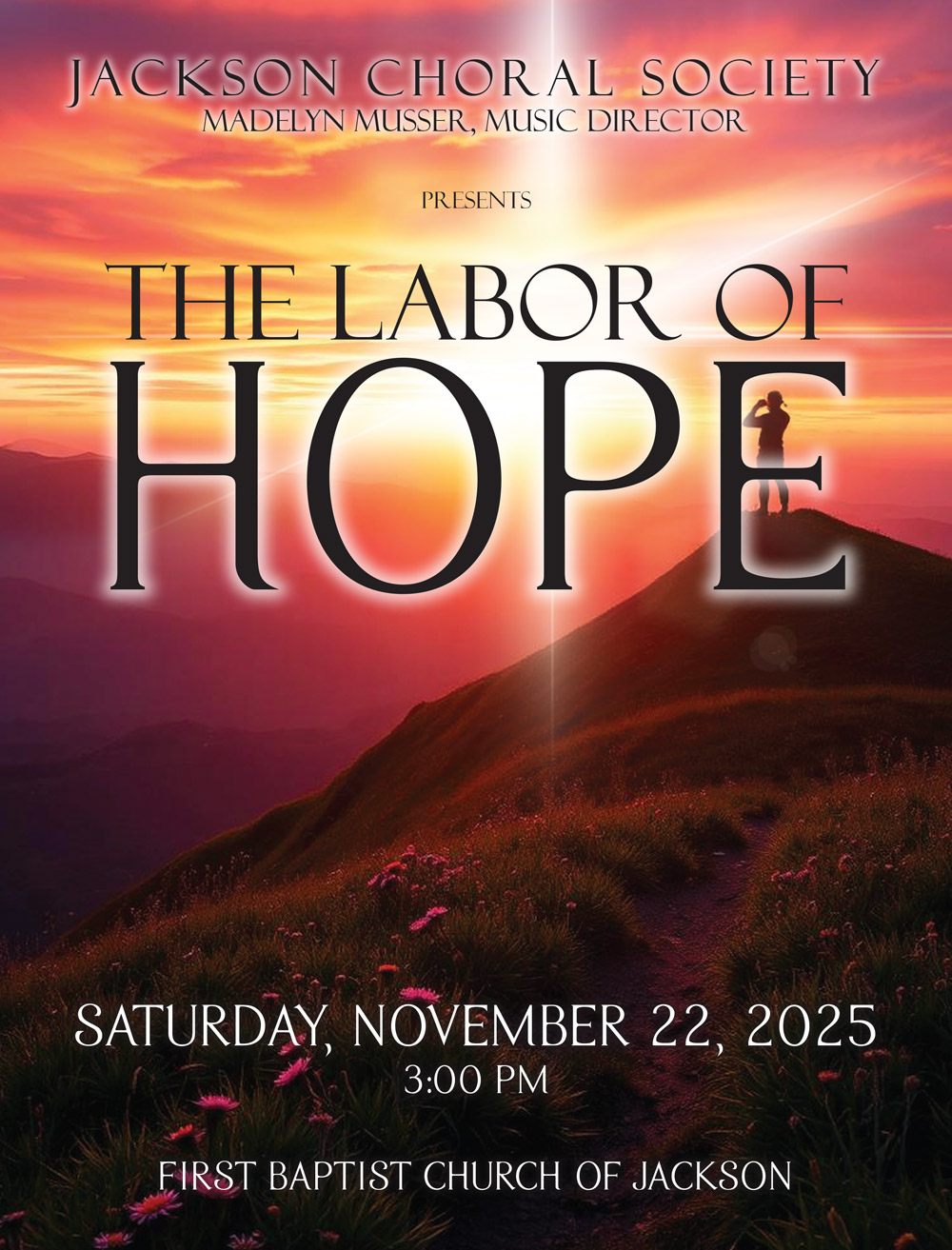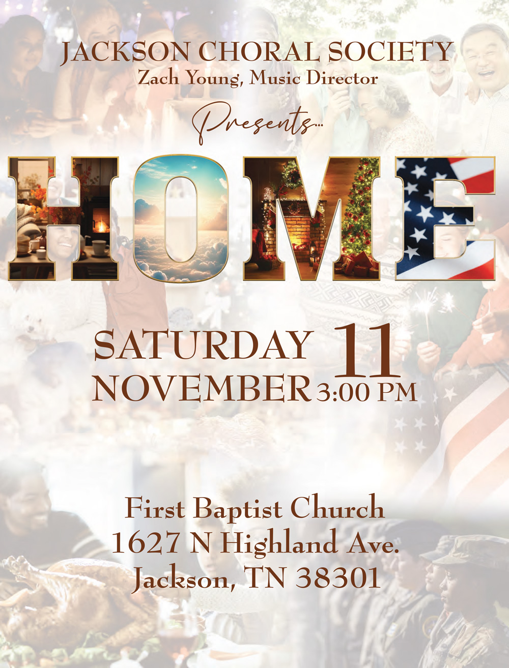 The Jackson Choral Society started in the spring of 2011. Previous community choirs in Jackson included the Lambuth Community Chorus in the 1980s and the Festival Singers of the First Presbyterian Church in the mid 2000s.